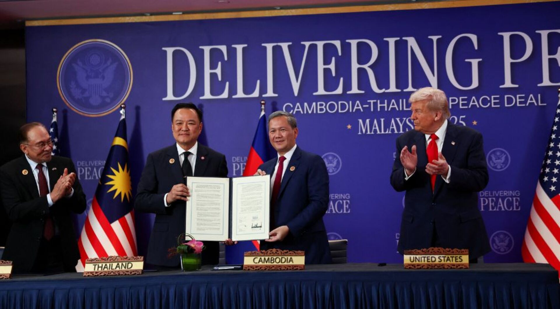 特朗普在马来西亚东盟峰会上签署泰柬停火协议【英语视频】