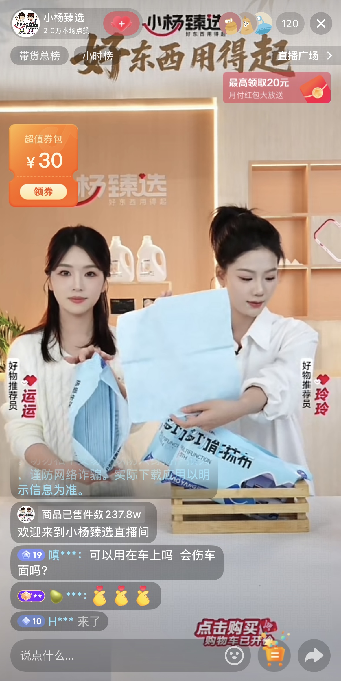 据界面新闻统计,“小杨臻选”抖音直播间的商品SKU约为20个,而账号上架的产品种类为30个左右,和小杨臻选小程序的品类数量几乎一致,多为单价较低的生活用品和食品。截至发稿前,直播间在线人数从开播时的700多人降至200人不到。据新抖数据,近30天内,“小杨臻选”账号粉丝量下降超过3.64万。