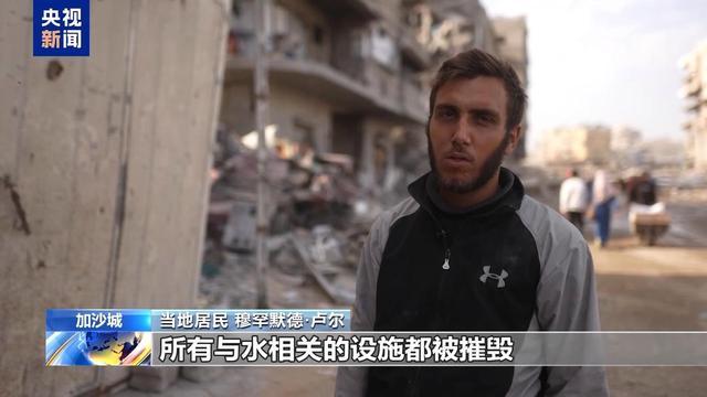 当地居民 穆罕默德·卢尔:我住在谢赫·拉德万地区的尽头,自以军进入后,供水设施几乎全部被毁,所有与水相关的设施都被摧毁。我们不得不从远处取回淡水,真的很累,常常凌晨就要出发去打水,每天最少要跑三次。