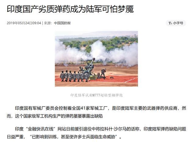 印度的情况同样糟糕。印度审计长公署2017年的报告显示,印军40%的弹药类型在激烈战争中撑不过10天。如果印度真要面临这种强度的冲突,10天之后士兵们可能就得拿着空枪拼刺刀了。