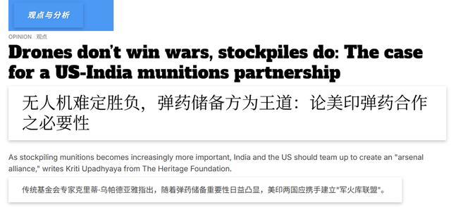 看到这里,我特意去翻了一下文章作者的背景。果然不出所料,作者克里蒂·乌帕迪亚(Kriti Upadhyaya)是传统基金会的印度访问研究员。这一看就明白了,这哪是战略分析啊,这分明是给印度军工产业搞的一篇招商引资的广告软文。