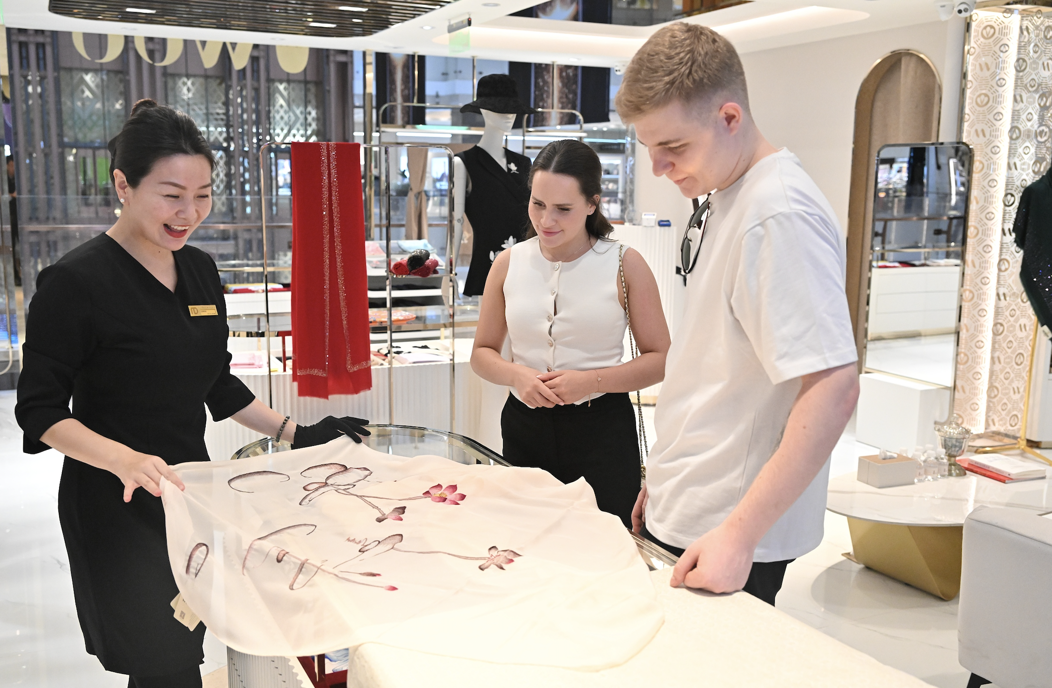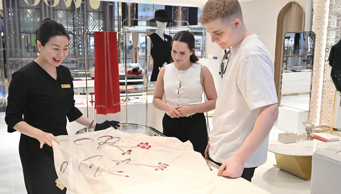 2025年9月8日,上海,新世纪大丸百货,俄罗斯游客基里尔正在和女友选购商品。图片来源:CFP