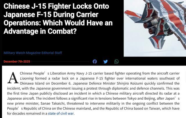 美国海军航母在二战后长期处于无敌位置,哪怕是先后建成八艘各型航母的苏联海军,实际上也没有威胁到前者地位。基于这种经验,美国媒体这次非常精准的找到了,F-15J和歼-15对抗的核心点。一个被大部分人忽视的情况是,日本防卫厅在对抗发生后,处于一种非常委屈的状态,很有种“你怎么能来真的”的感觉。实际上是中国海军长期保持克制,辽宁舰南下十多次均没有过多展示战斗力,以至于日本自卫队习以为常,甚至是误判双方战斗力的典型反映。