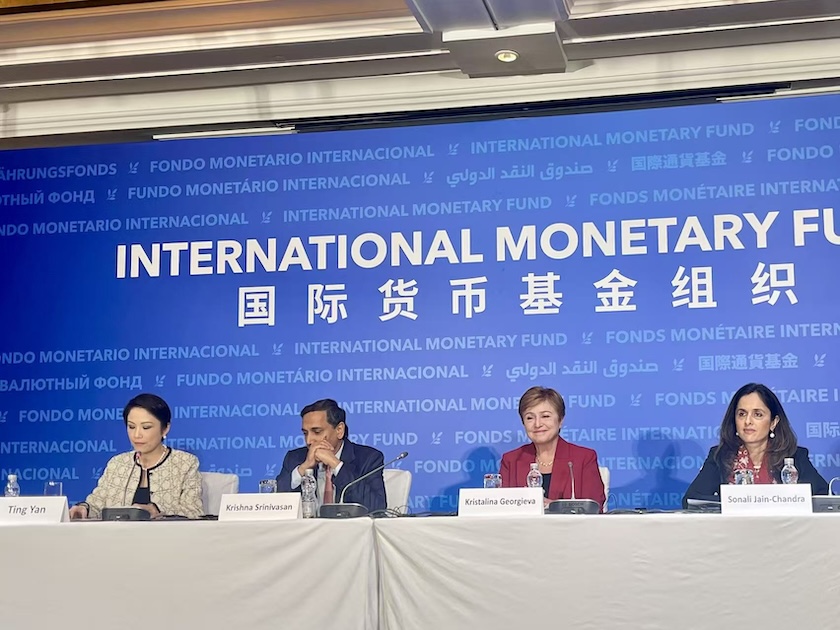 2025年12月10日,国际货币基金组织(IMF)在北京举行新闻发布会。图源:刘婷/界面新闻