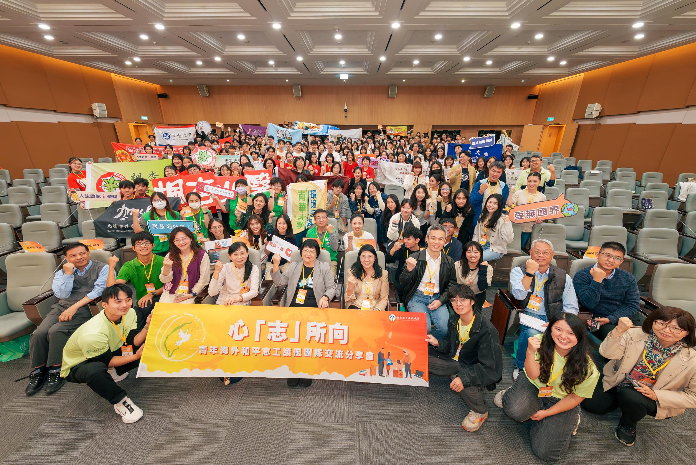 教育部青年發展署長期推動青年海外和平志工服務,114年共補助113組團隊前往20國進行志工服務,為表揚優良團隊並促進團隊間的心得交流,互相觀摩學習,配合國際志工日於12月7日在張榮發國際會議中心舉辦「心志所向-青年海外和平志工績優團隊交流分享會」,今年共有27組青年海外和平志工績優團隊齊聚一堂,展現跨文化互動、在地需求回應以及團隊傳承延續等面向的海外志願服務成果。