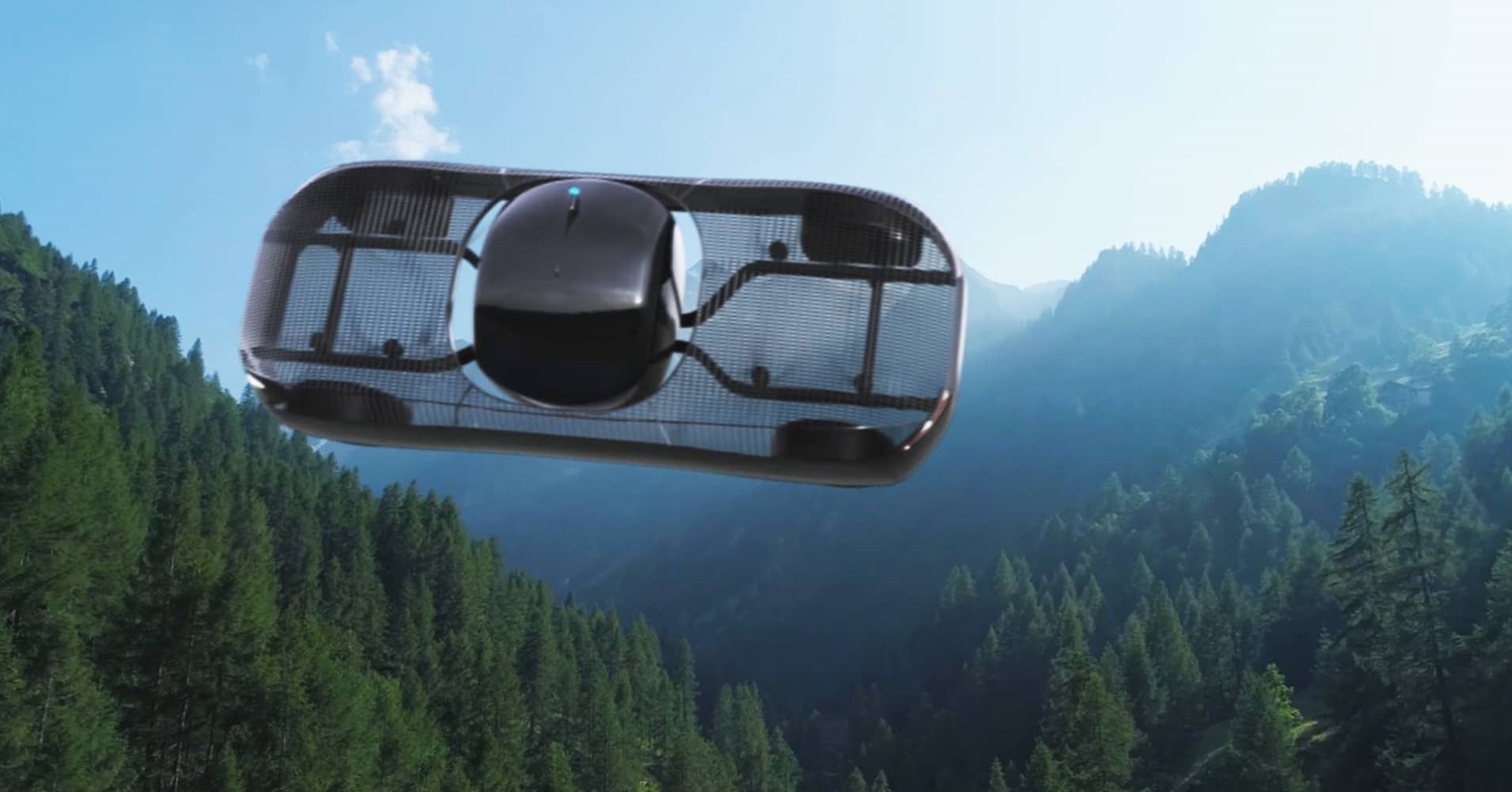 车辆驾驶座四周配备有四台强力螺旋桨,碳纤维网状车身尺寸约为五米x两米,允许空气通过车内,空中最高飞行速度为每小时110英里(177公里),空中航程同样为110英里。