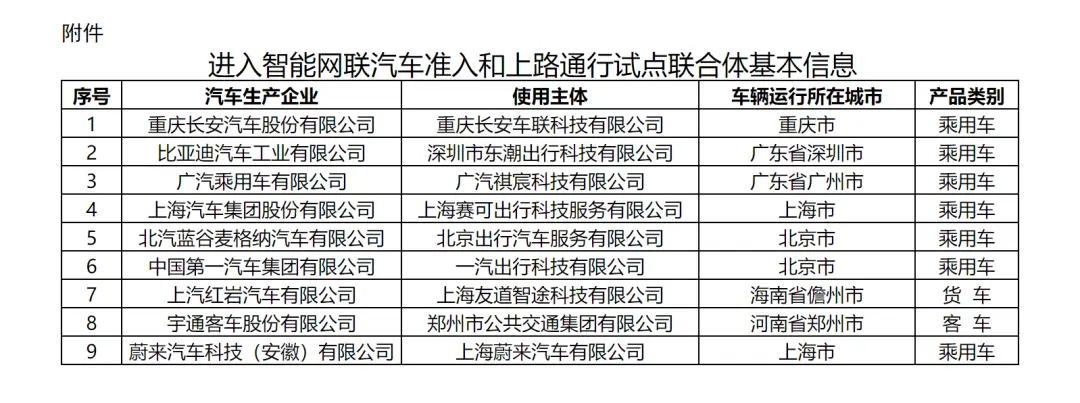 在以上因素的共同影响下,最终仅有九家车企通过试点申报,分别是长安、比亚迪、广汽、上汽、北汽蓝谷、一汽、蔚来等七家乘用车企业,以及两家商用车企业上汽红岩、宇通。