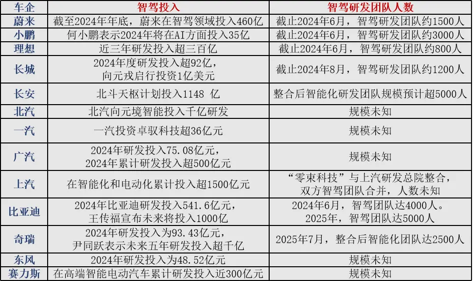 从智能驾驶的研发数据来看,论研发时间,小鹏2014年开始自动驾驶研发,长安2018年才发布“北斗天枢”计划。论投入资金,动辄百亿的年投入金额也是常事。论团队人数,千人规模近乎是门槛。