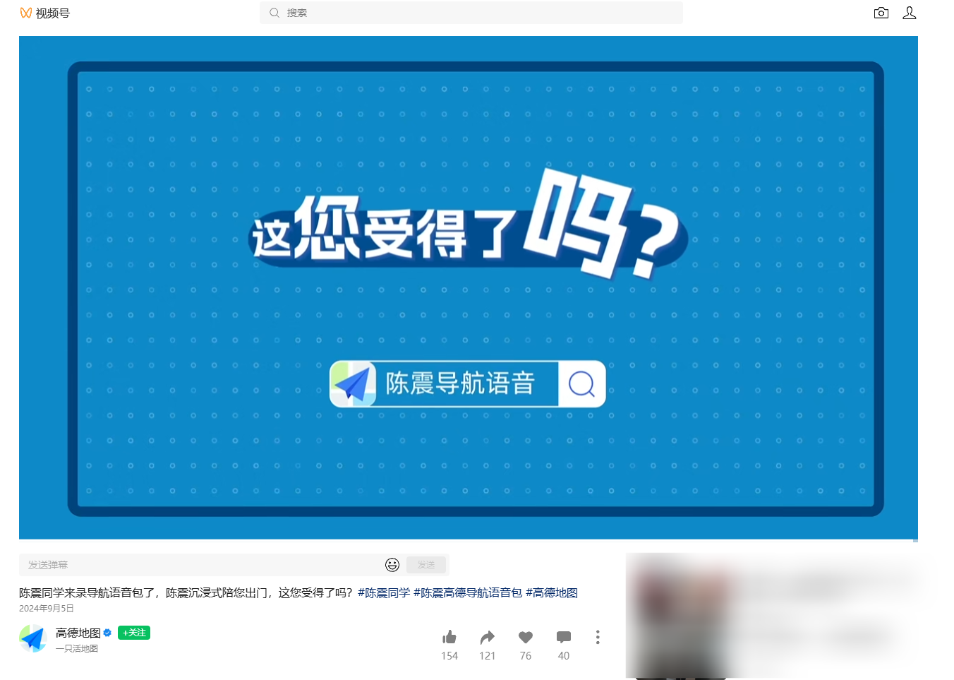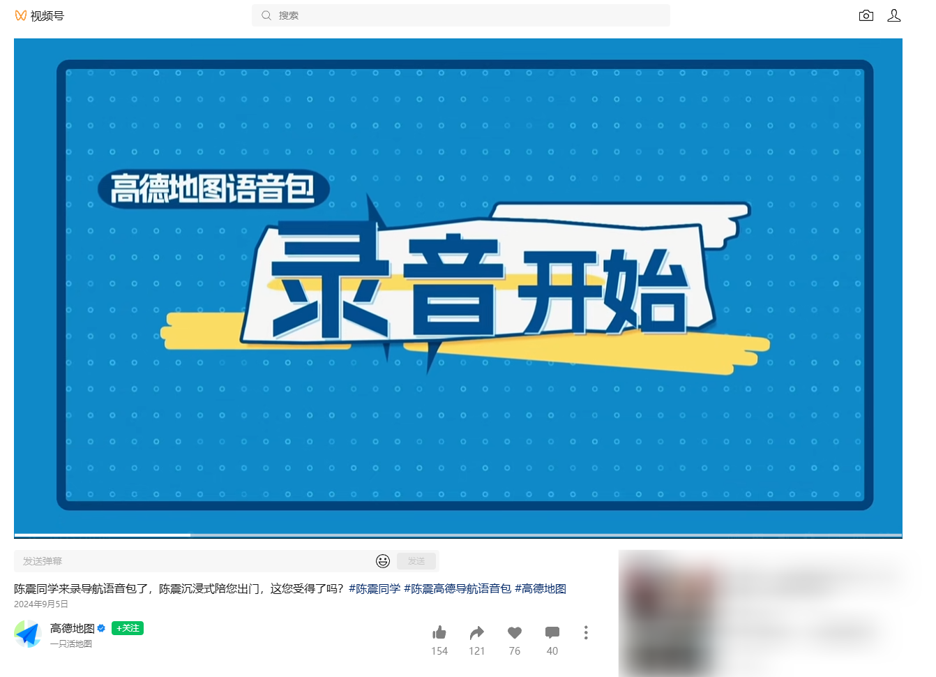 据了解,2024年9月5日,高德地图曾上线“陈震导航语音”,不过,目前该语音包已无法在高德地图中搜索到,应该已被下架。