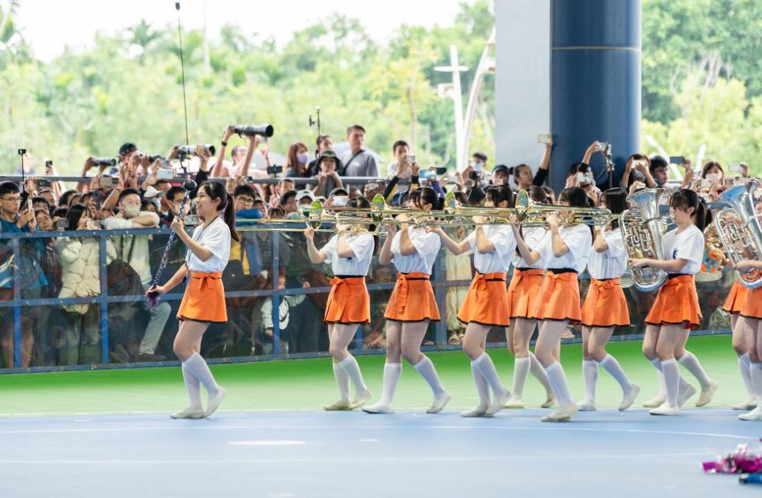 最受矚目的「橘色惡魔」京都橘高校吹奏樂部壓軸登場,以活力滿滿、笑容滿滿、夢想滿滿的風格聞名,一出場即引起全場熱烈歡呼。橘色惡魔以經典的橘色制服、俐落隊形與充滿感染力的舞步,搭配強而有力的吹奏技巧,展現世界級行進樂團的高水準演出,讓全場觀眾沉浸在音樂與肢體語彙交織的震撼當中,掌聲不絕於耳。