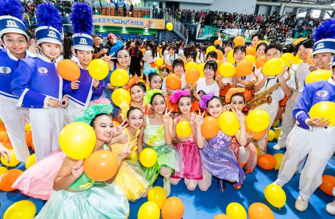 「2025 屏東交響・橘色狂潮」20日下午在屏東國際滑輪溜冰場登場,吸引大批民眾進場觀賞。來自日本、以「橘色惡魔」享譽國際的京都橘高校吹奏樂部,首度登臨屏東,與南榮國中行進管樂團、屏東女子高級中學儀隊、美和科技大學熊鷹儀隊,呈現一場熱力四射的跨國交流演出,為冬季的屏東注入最亮眼的青春能量。