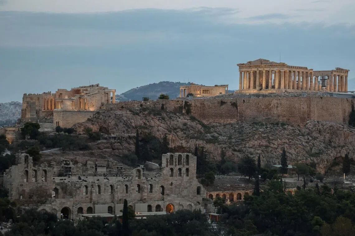 旅游业是希腊经济的关键支柱。图为雅典著名景点希罗德·阿提库斯剧场,今年10月起关闭整修三年。 (路透社)