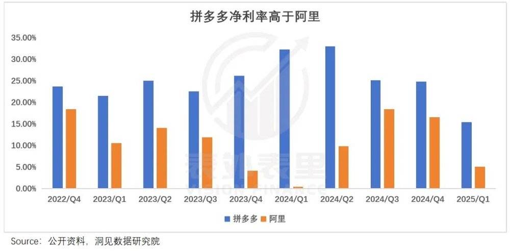 可以看到,近几年拼多多的净利率总是比阿里高。