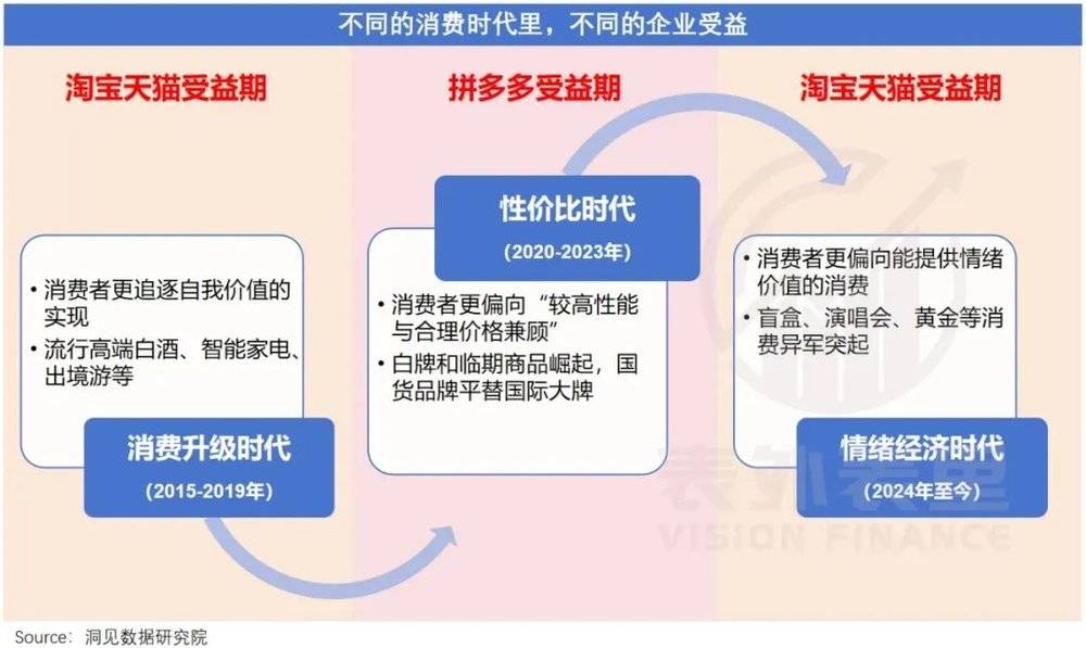 而进入情绪经济时代,消费者又换了口味,不再满足于单纯低价,也追求“买得开心”,天平又开始向淘宝倾斜。