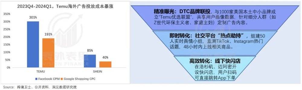 狠起来连自己都“砍一刀”,是因为海外广告成本指数级增长,眼看着回报跌破盈亏平衡线,Temu立即按停“广撒网”式投放,重构流量漏斗以节流。