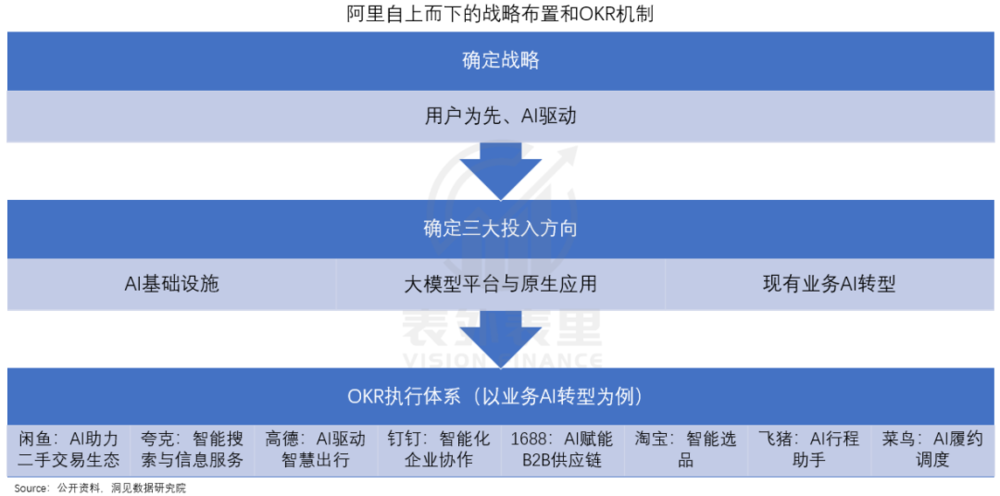 拿AI来说,吴泳铭宣布“用户优先、AI驱动”战略后,蔡崇信转头立下“三五年内所有业务注入AI”的军令状,各BG考核表上随即多出了AI这道必答题。