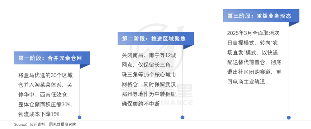 阿里的撤退,不是简单抽身,而是生态体系“牵一发动全身”。以社区团购为例,淘菜菜收缩时,采取了先砍冗余仓网、再淘汰区域低效网点、最后重组业务的“三阶段式”温和收缩。