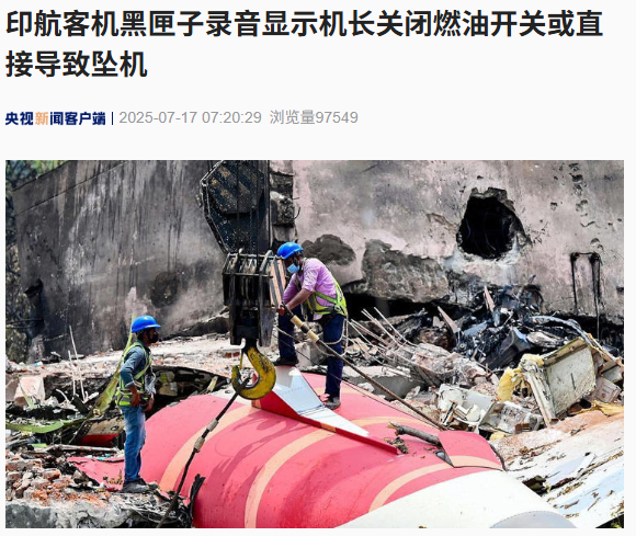 该录音内容为两名飞行员之间的对话,目前调查重点已从技术故障转向机组操作失误。印度航空尚未就此回应,消息尚待官方确认。