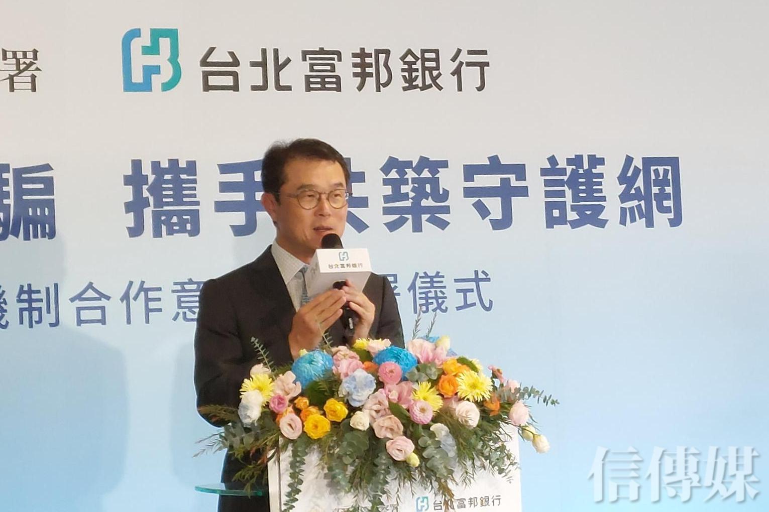 台北富邦銀行與臺灣高等檢察署今日舉辦「可疑交易分析機制」合作簽約儀式,欲透過整合司法機關與企業育源,推動聯防機制強化防詐防線。會後郭倍廷接受媒體聯訪提到銀行業務等未來展望。
