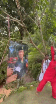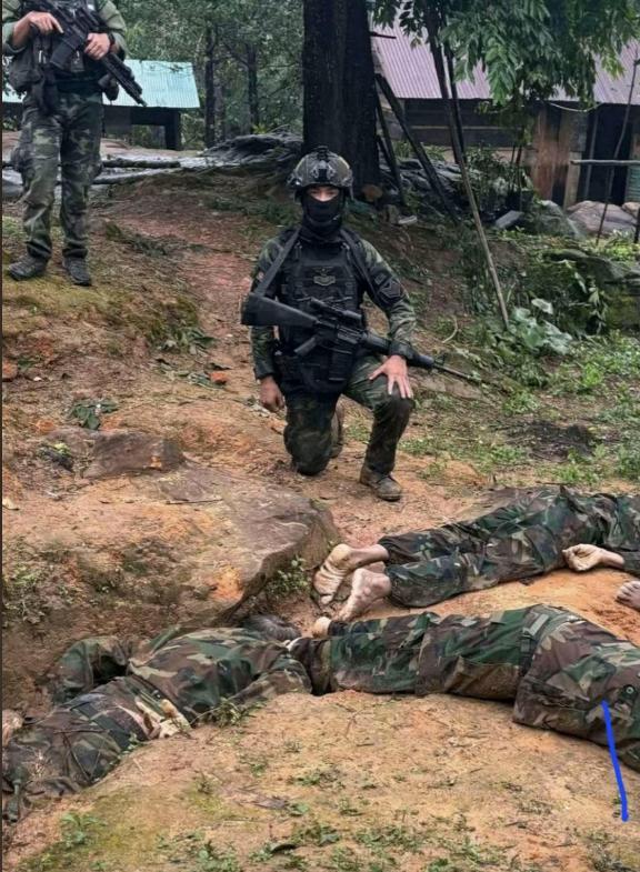 ▲泰国士兵与柬埔寨阵亡士兵合影