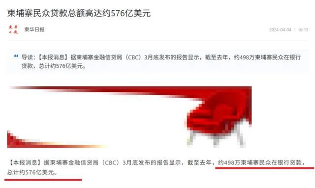 早在2019年,新加坡《联合早报》的报道就指出,柬埔寨《贷款比人均生产总值高一倍 柬埔寨个人负债严重 威胁国家政经稳定》。
