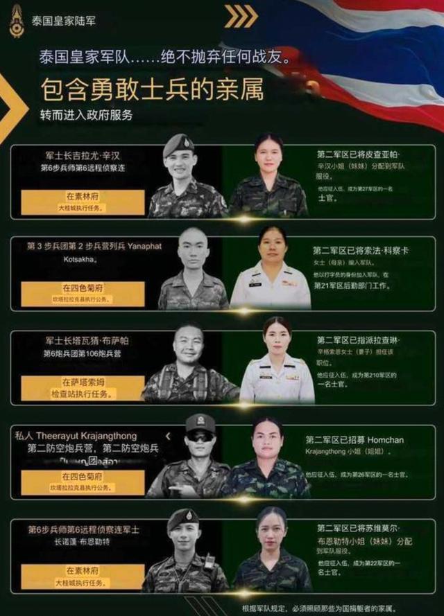 ▲泰国士兵阵亡之后,除了抚恤与津贴以外,他们的亲人(母亲、妹妹或妻子)都会被酌情安排工作,给一些后勤单位或是文职岗位以保障家庭生活