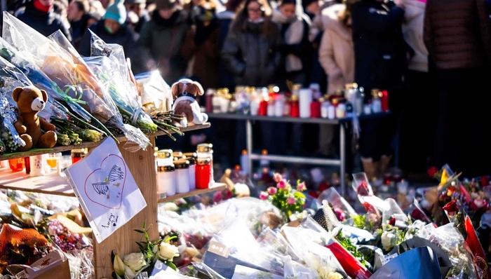 当地时间2026年1月4日,人们在“星座”酒吧附近设置的临时纪念场所献上鲜花和悼念卡片。来源:视觉中国
