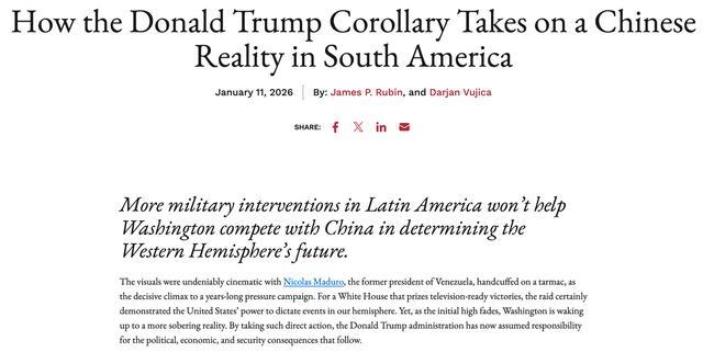 美国总是习惯于把南美看作自家后院,手里拿着大棒,时刻准备敲打那些不听话的孩子,但这种充满傲慢的心态在2026年显得很可笑。