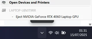 IT之家 7 月 17 日消息,近日有网友在 Reddit 论坛发贴称,Windows 11 任务栏中的“安全移除硬件”选项中,竟然可以“弹出”显卡(GPU)。
