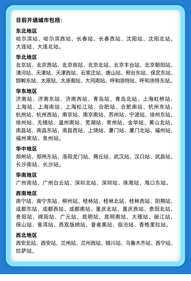 值得注意的是,在北京西、北京南、广州南、上海、上海虹桥、杭州东这6个车站,购买商务座车票的旅客还可享受将行李直接搬运至车站商务座候车厅的专属服务,此项服务同样按98元/件收费。