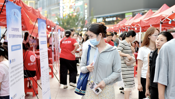 2025年7月11日夜,安徽合肥,市民在淮河路步行街百盛广场寻找职业岗位。图片来源:CFP