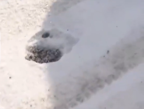 拍摄者表示,当天早上上班前发现院子里的雪地上有看似熊的脚印,储藏室里几箱猕猴桃上也有抓痕。