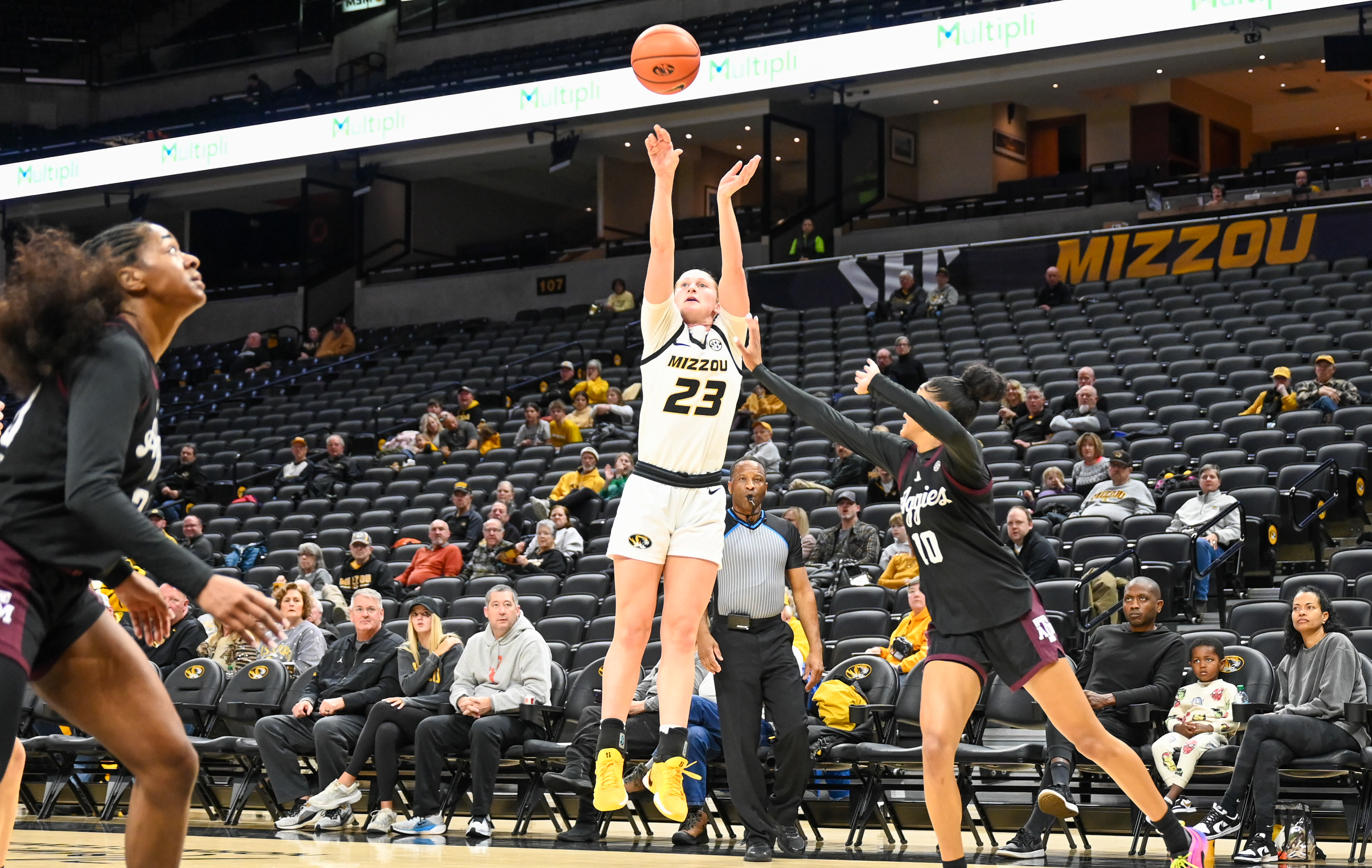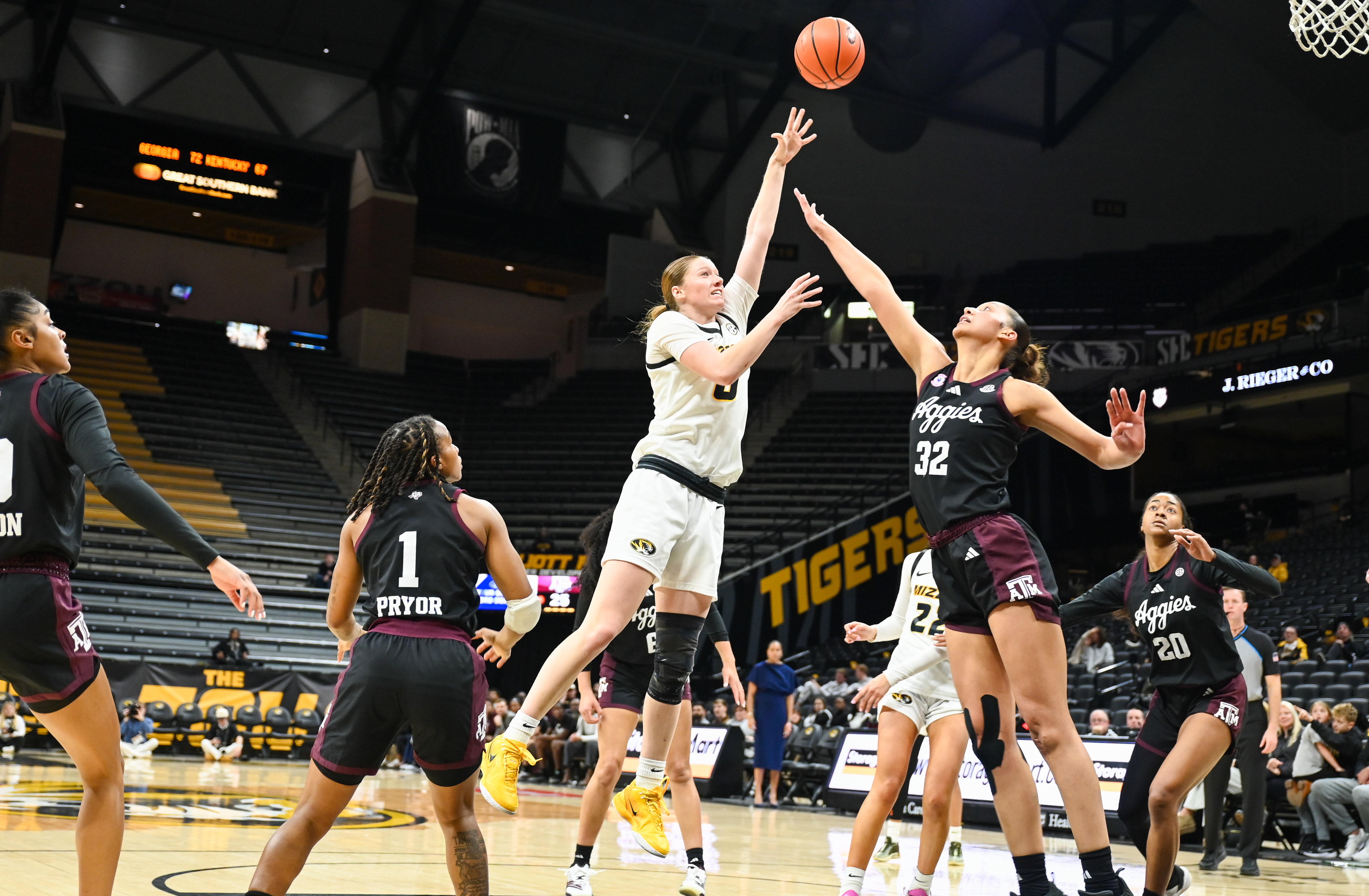 Grace Slaughter hit a jumper with 6:13 remaining in the first to give Mizzou a 5-4 lead. The Tigers took control, leading the final 33:47 and defeating Texas A&M 75-62. It all started by winning the first quarter 21-9.