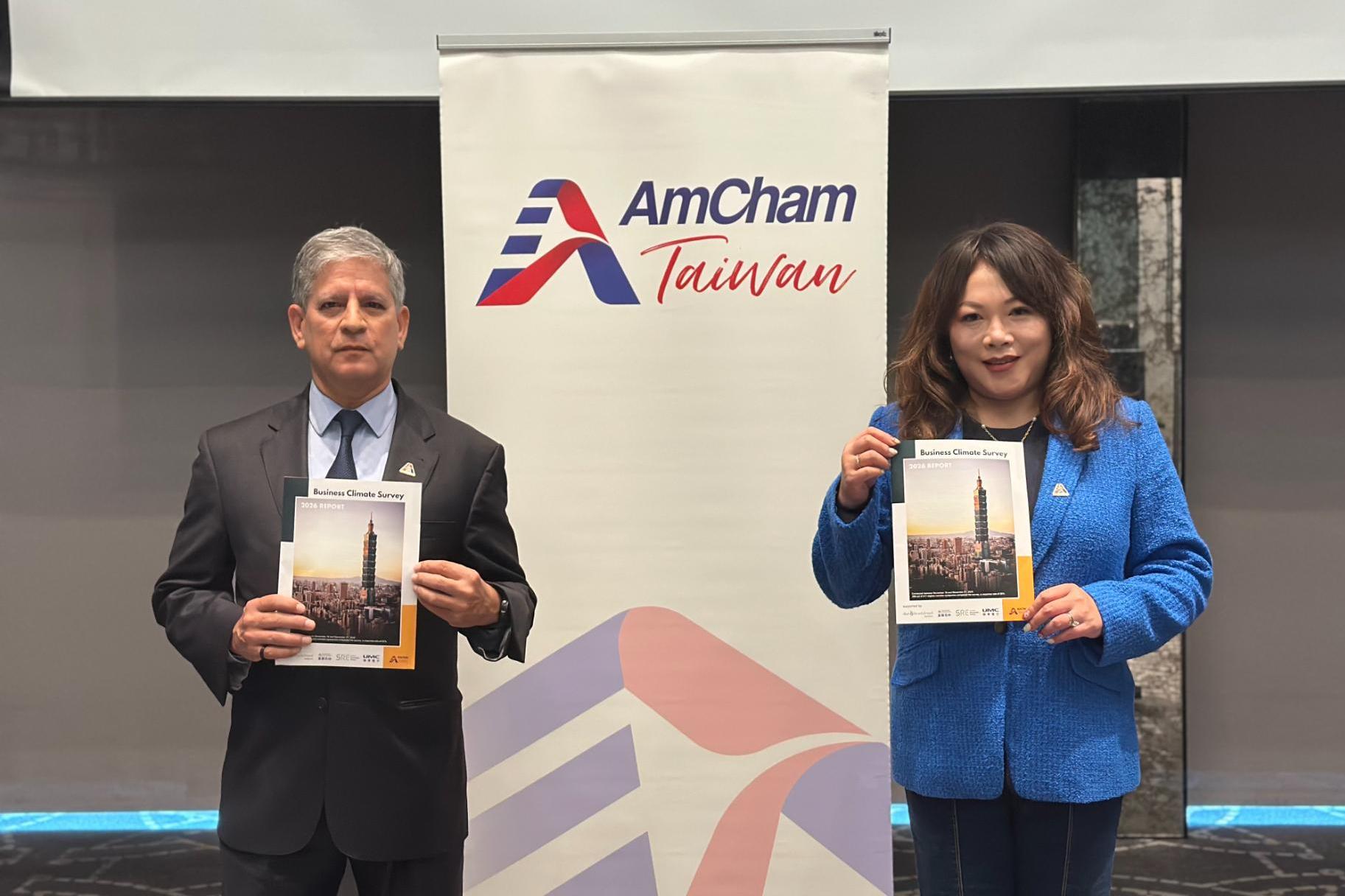 台灣美國商會27日發布《2026年商業景氣調查》。圖為台灣美國商會理事長陳幼臻(右)、商會執行長魏凱。(圖片來源/台灣美國商會)