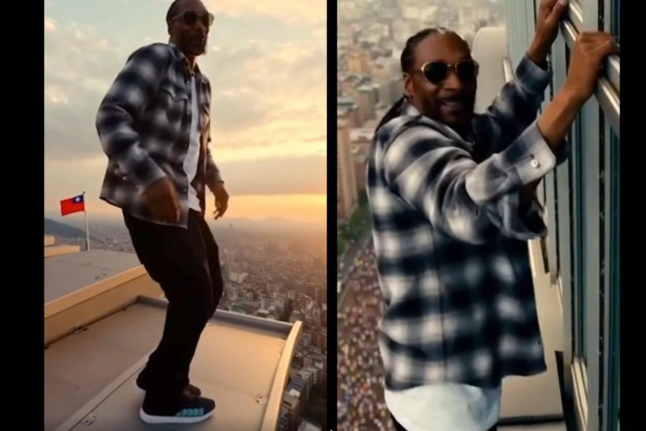常受美國職業橄欖球大賽邀約表演,饒舌界的重量級人物史努比狗狗(Snoop Doog)也來徒手「攻頂」101大樓。(圖片來源/Snoop Doog臉書)