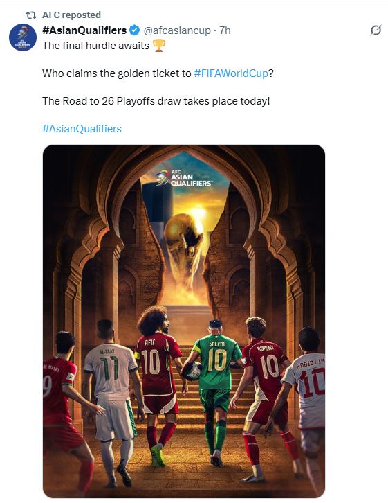 世预赛亚洲区2026附加赛抽签时间及转播频道