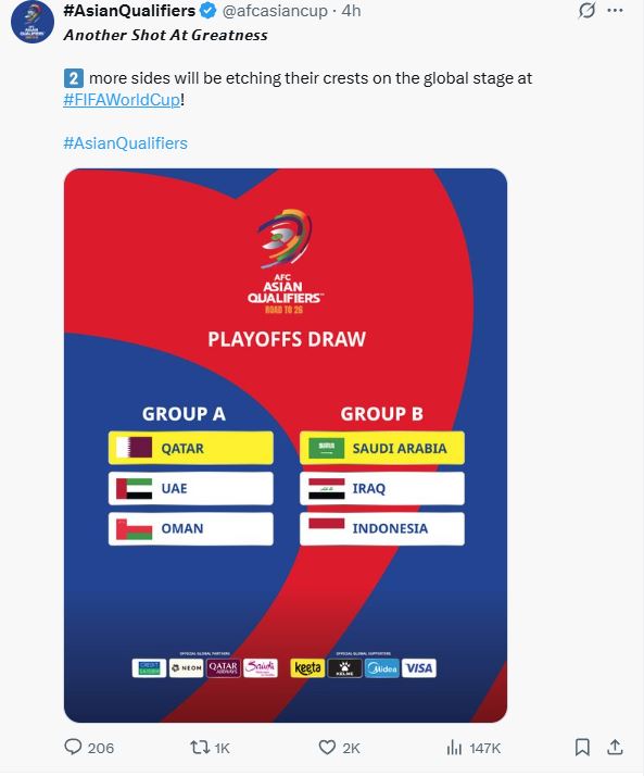 卡塔尔、阿联酋、沙特阿拉伯、印度尼西亚、伊拉克和阿曼虽在第三轮预选赛未能直接晋级,但均已进入当前阶段。