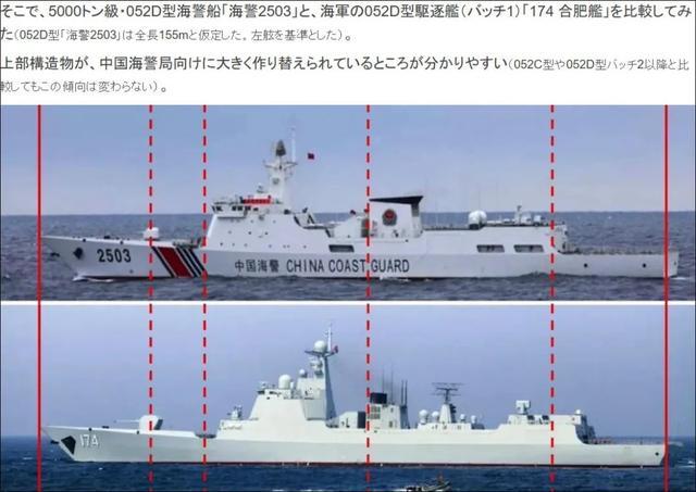 ▲海警2503舰与052D对比图