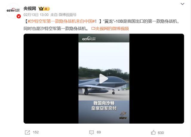 2月13日,在事前没有透露其他信息的背景下,《央视网》等官方媒体公开证实,国产“翼龙”-10B已经成功出口沙特,这不仅是国内第一次对外出口隐身战机,也是沙特装备的第一款隐身战机。从更宏观的角度上来看,则是中航工业进一步抢占无人机市场份额,并为歼-35AE出口铺垫的关键。