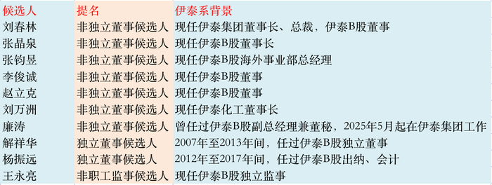 关于候选人,界面新闻曾致电伊泰B,证券部相关负责人一度表示,“目前公司无法确认哪些提名董事来自伊泰B股”,颇具神秘感。