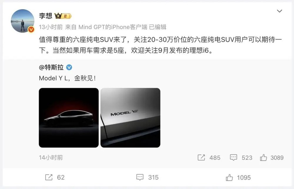 最先抛出观点的,是来自最直接竞争对手的隔空喊话。理想汽车创始人李想预测,Model Y L 的价位将在 20 万至 30 万元之间,这无疑是一个极具杀伤力的价格。