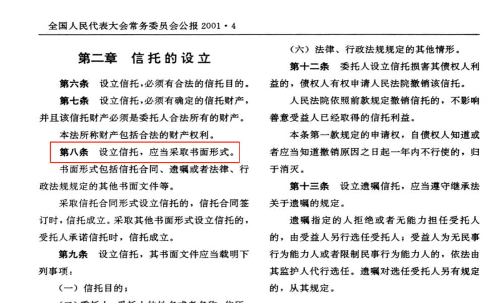 我国2001年就颁布了《信托法》图源:国家法律法规数据库
