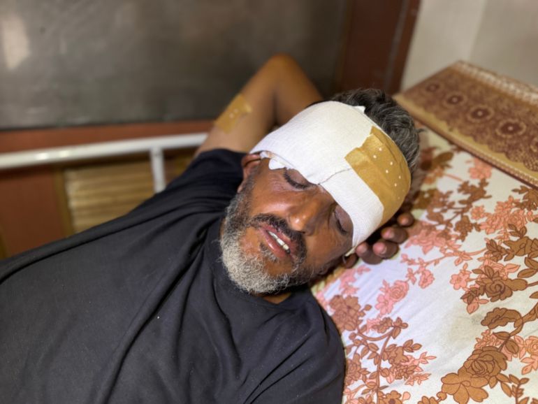 “晚上10点就赶到分发点,和成千上万人一起睡在沙地上。我们忍受着尘土和屈辱,”周三头部受伤的曼苏尔说。