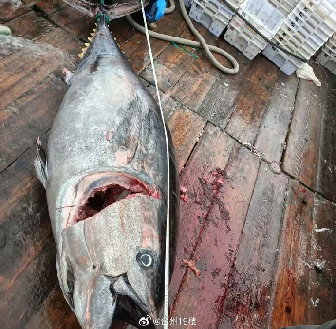 在日常的市场流通中,普通的金枪鱼重量大多在十来斤到几十斤不等。一旦重量超过100斤,就已经属于较为少见的精品。而像这种单体突破400斤的巨无霸级别,在东海海域更是多年难遇的极品。