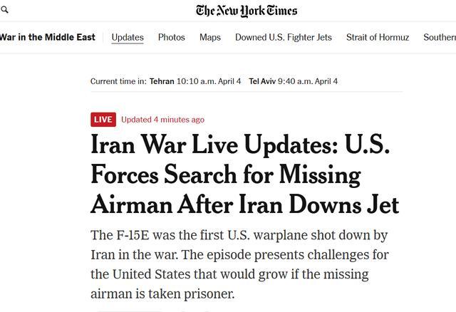 因为美国中央司令部一直没有回应,特朗普也拒绝提供行动细节,所以目前能得到的消息,都是《纽约日报》《华盛顿邮报》等美国媒体在爆料。综合各方消息,大致情况应该是这样的:当地时间4月3日中午时分,美军一架驻约旦的F-15E,在伊朗中部被击中,两名飞行员跳伞。经验丰富的美军救援队伍立即响应,凑出了由F-16CJ电子战机、HC-130J运输机、HH-60W搜救直升机、A-10攻击机和KC-135R加油机组成的空中编队,从伊朗西部边境突进200多千米紧急救援。经过数个小时奋战,成功搭救F-15E前座飞行员,但HH-60W被击伤,殿后的A-10直接被击落,勉强飞到霍尔木兹海峡后飞行员跳伞。