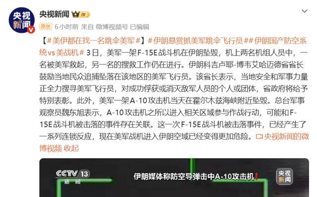 经过前后近一天的混战后,突然爆发并吸引全球注意力的美军F-15E坠毁事件,暂时落下帷幕,但美军在救援行动中暴露出的诸多问题,还在继续发酵,甚至正在直接影响后续战局。