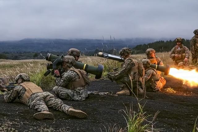▲美军士兵发射FGM-148“标枪”反坦克导弹