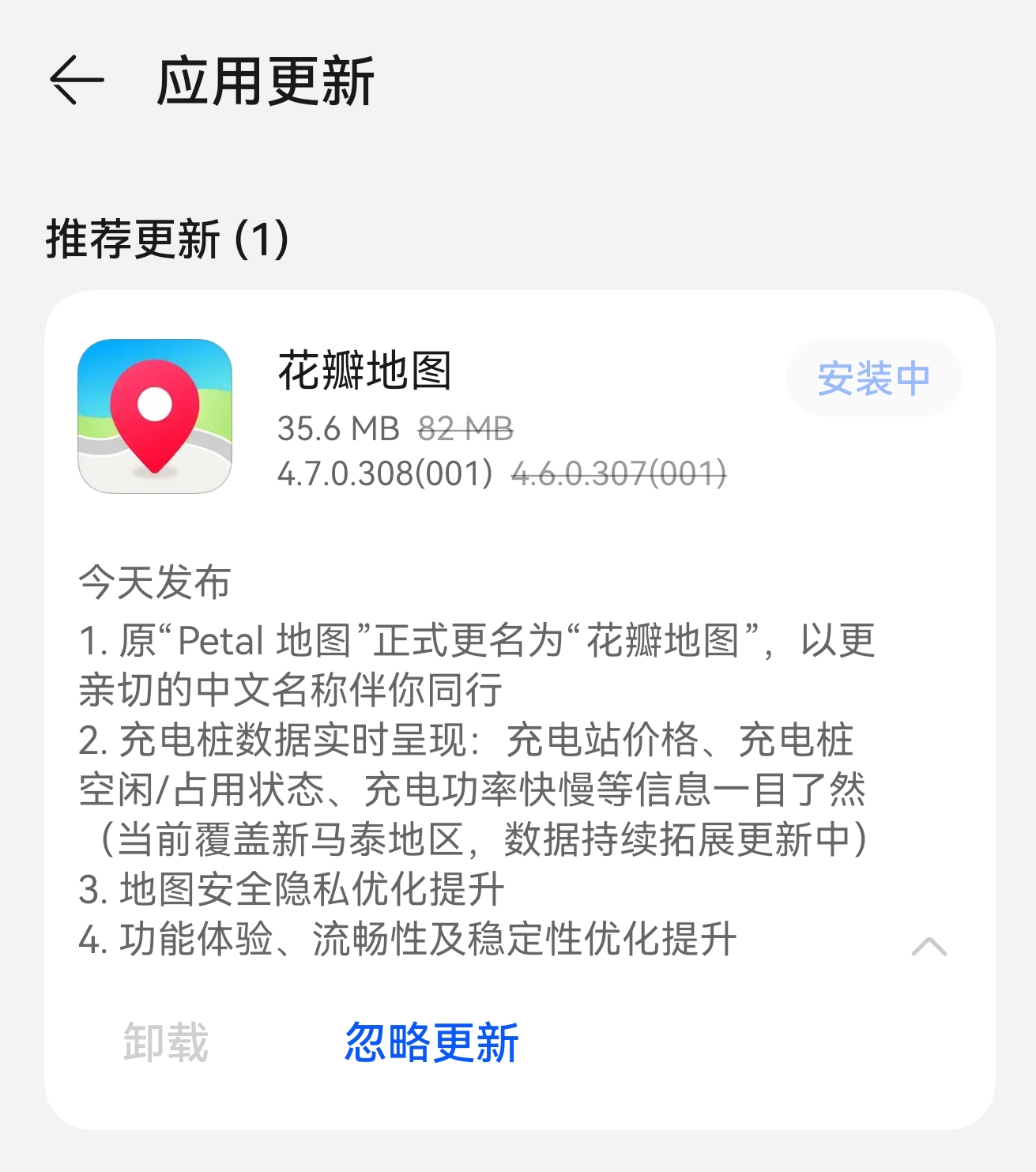 IT之家 7 月 19 日消息,华为 Mate 70 RS 用户 @猫言喵语 发现,华为原“Petal 地图”更新了 4.7.0 版本,应用名称正式变更为“花瓣地图”(IT之家注:鸿蒙版版本号 5.0.0 开始,名为“地图”)。