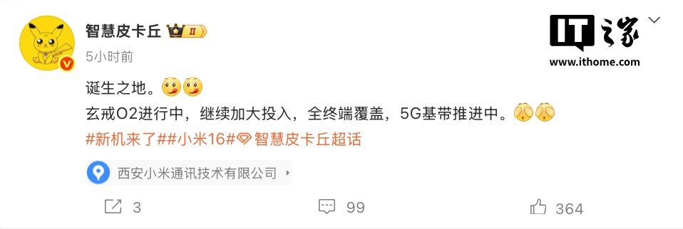 IT之家 7 月 19 日消息,博主 @智慧皮卡丘 发文,暗示小米正加大投入研发玄戒 O2 芯片及 5G 基带,实现“全终端覆盖”,结合此前爆料,全终端覆盖其中最重要的一环就是“人车家”中的汽车,即玄戒 O2 将首次搭载到小米汽车中。