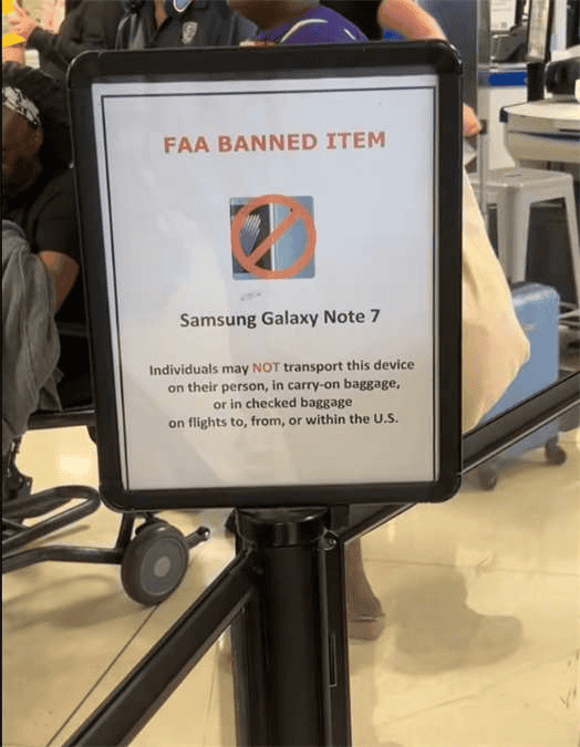 受电池爆炸门事件影响,全球范围内多家机场也禁止用户携带 Galaxy Note 7 手机。不过虽然已过去将近 9 年时间,网友发现在美国机场依然安置告示牌,提醒用户禁止携带 Galaxy Note 7 手机。